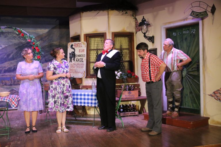 Bestens unterhalten wurden die Zuschauer im Saal vom Michlwirt bei der Premiere der Heimatbühne Palling, die mit ihrem Stück „Die falsche Katz“ (Maximilian Vitus) in die Theatersaison startete. Die lautstarken Lachsalven und der reichlich gespendete Applaus geben den Akteuren und den vielen Helfern hinter der Bühne ordentlich Rückenwind für die bis Anfang Dezember dauernde Spielzeit. Ganz besonders begeisterten auf der Bühne Christian Berreiter als Hausknecht mit der Wandlung zum Rezeptionisten und Ober, sowie Heidi Jung als schwäbischer Hotelgast. Jung schaffte es trotz der Spielerrolle das Team als Regisseurin optimal einzustellen und auch den kleineren Rollen ihre besondere Note zu verleihen. Ganz sicher dürfen sich die Zuschauer der kommenden Aufführungen auf unterhaltsame Abende freuen.